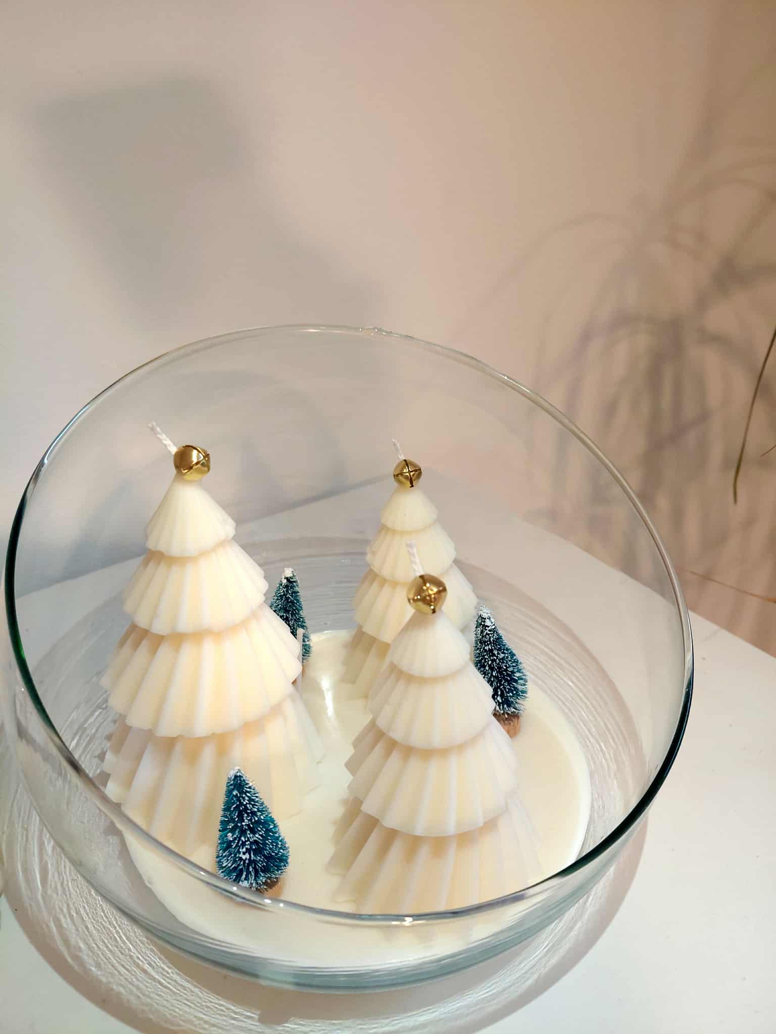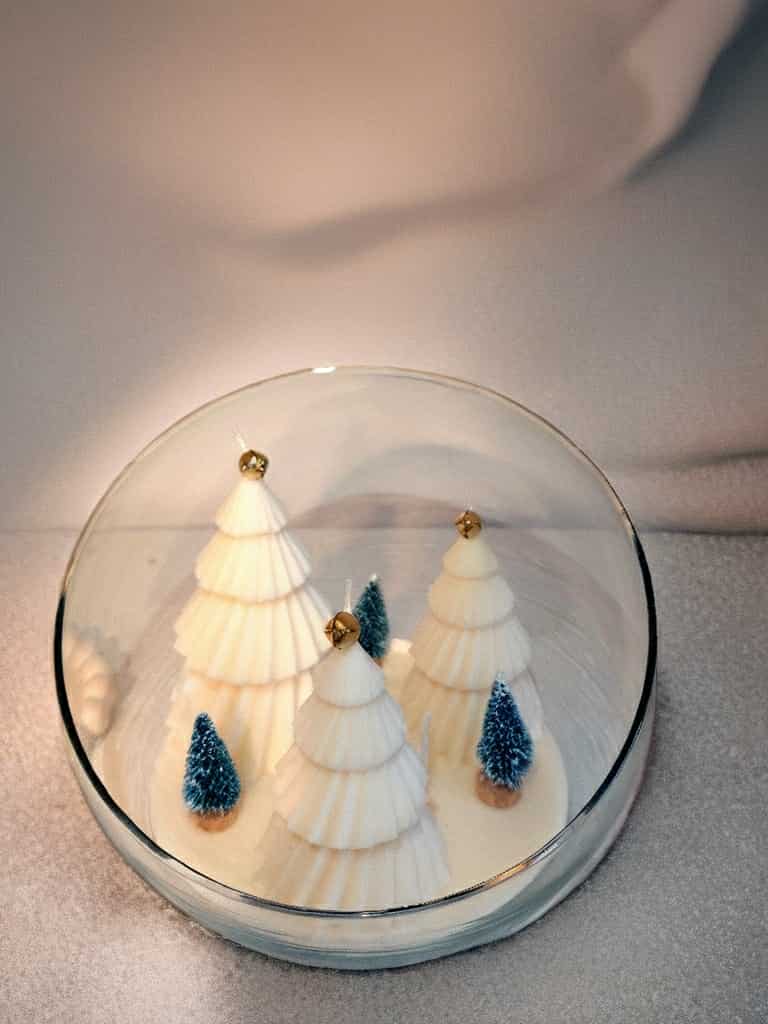Duftende juletræ-lys i sojavoks i glaskuppel